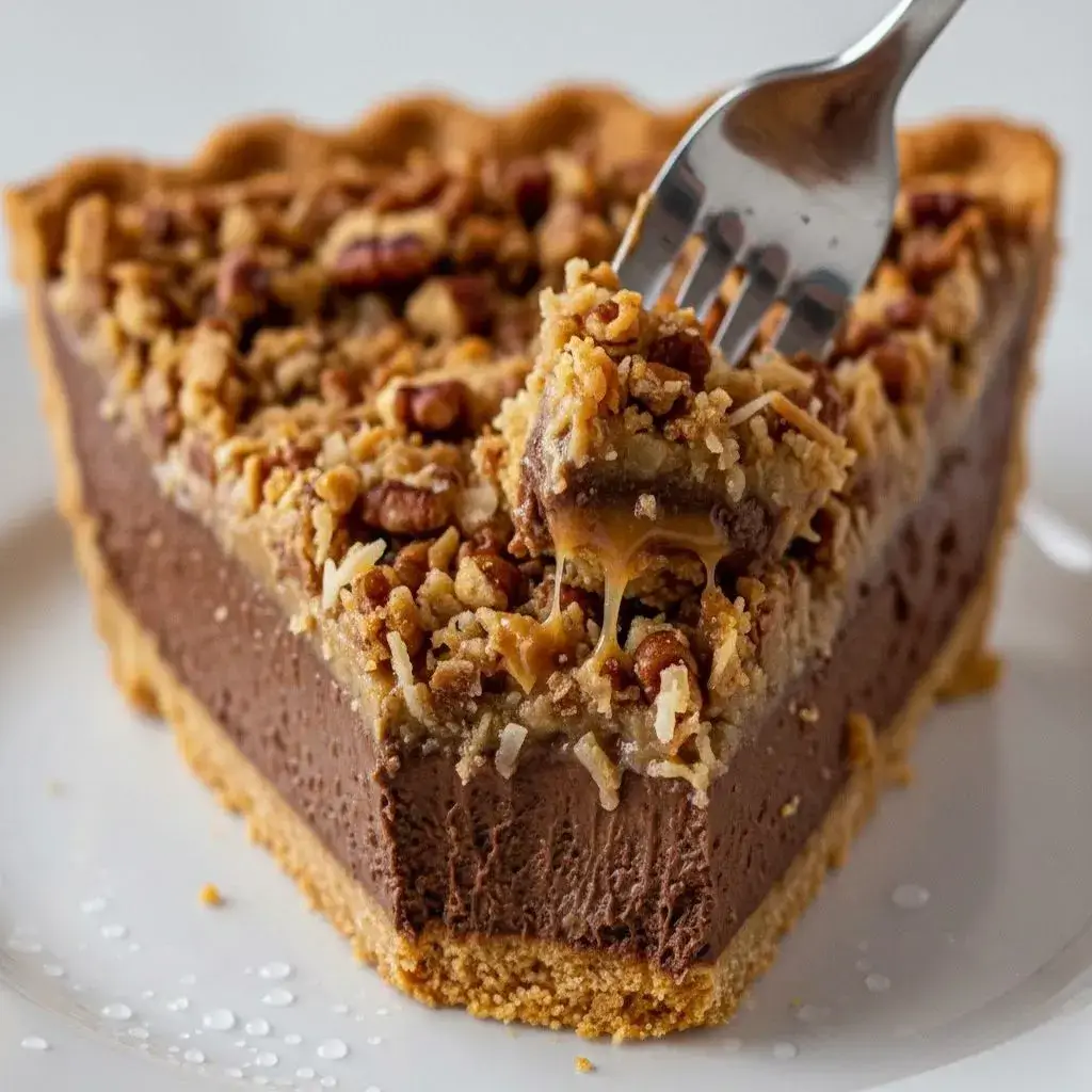 - Third, the texture is pure bliss: a crisp chocolate cookie crust, a cloud-like chocolate filling, and that iconic coconut-pecan topping.