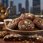 Luxuriously rich chocolate cookies inspired by Dubai’s love of bold flavor and indulgence featuring dark chocolate, a touch of cardamom, and a hint of rose for a unique Middle Eastern twist.