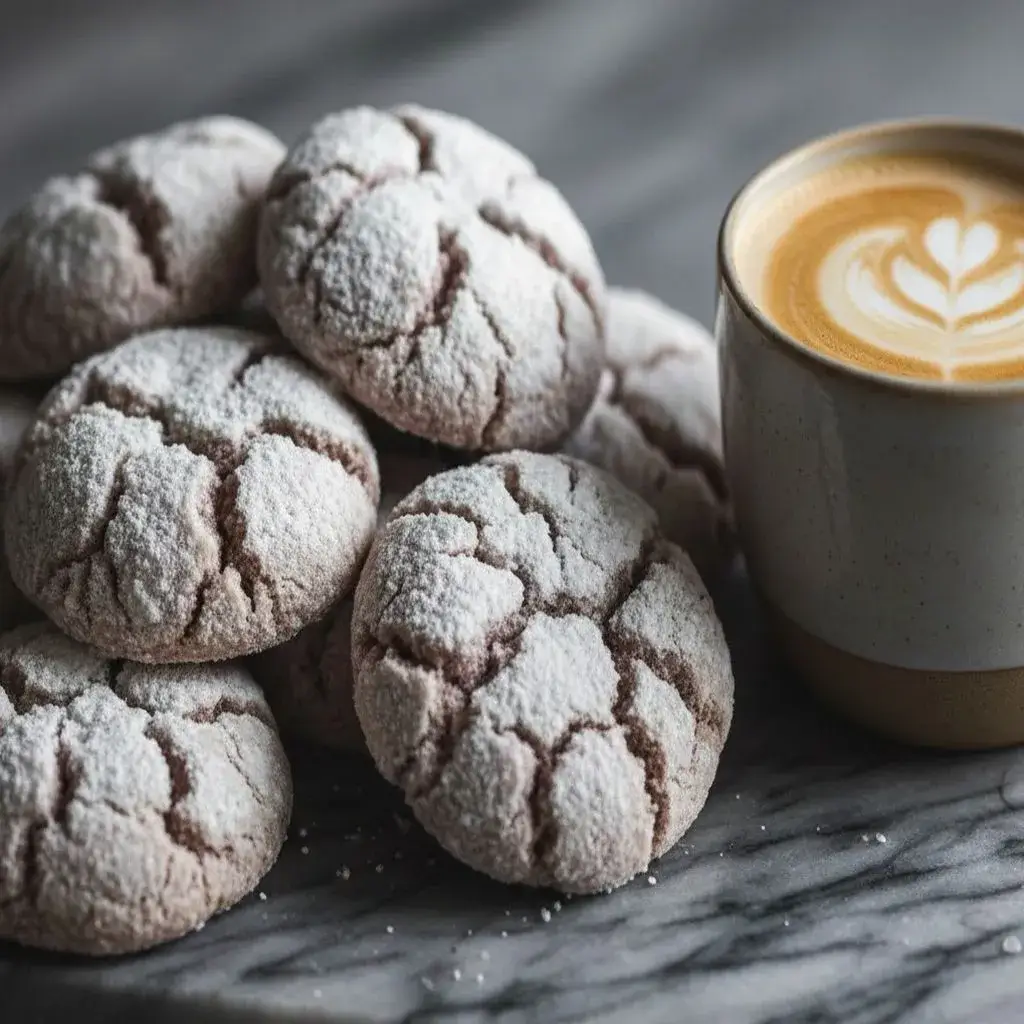 Imagine your favorite cozy cafรฉ drink, earthy Earl Grey tea, sweet vanilla, and frothy steamed milk transformed into a cookie. Now picture that cookie with a soft, chewy center, a delicate, crackled sugar crust, and a mesmerizing snow-dusted appearance.